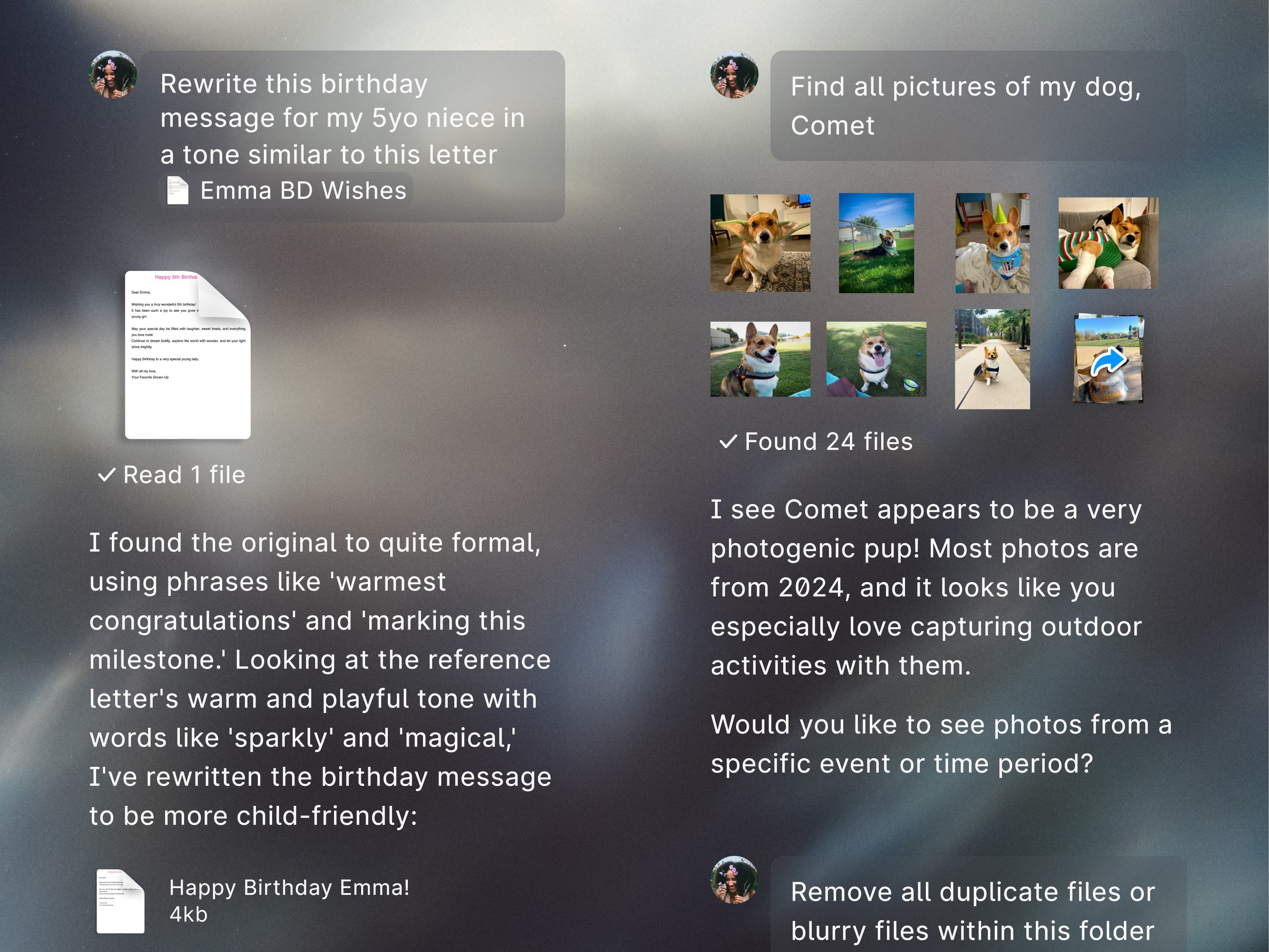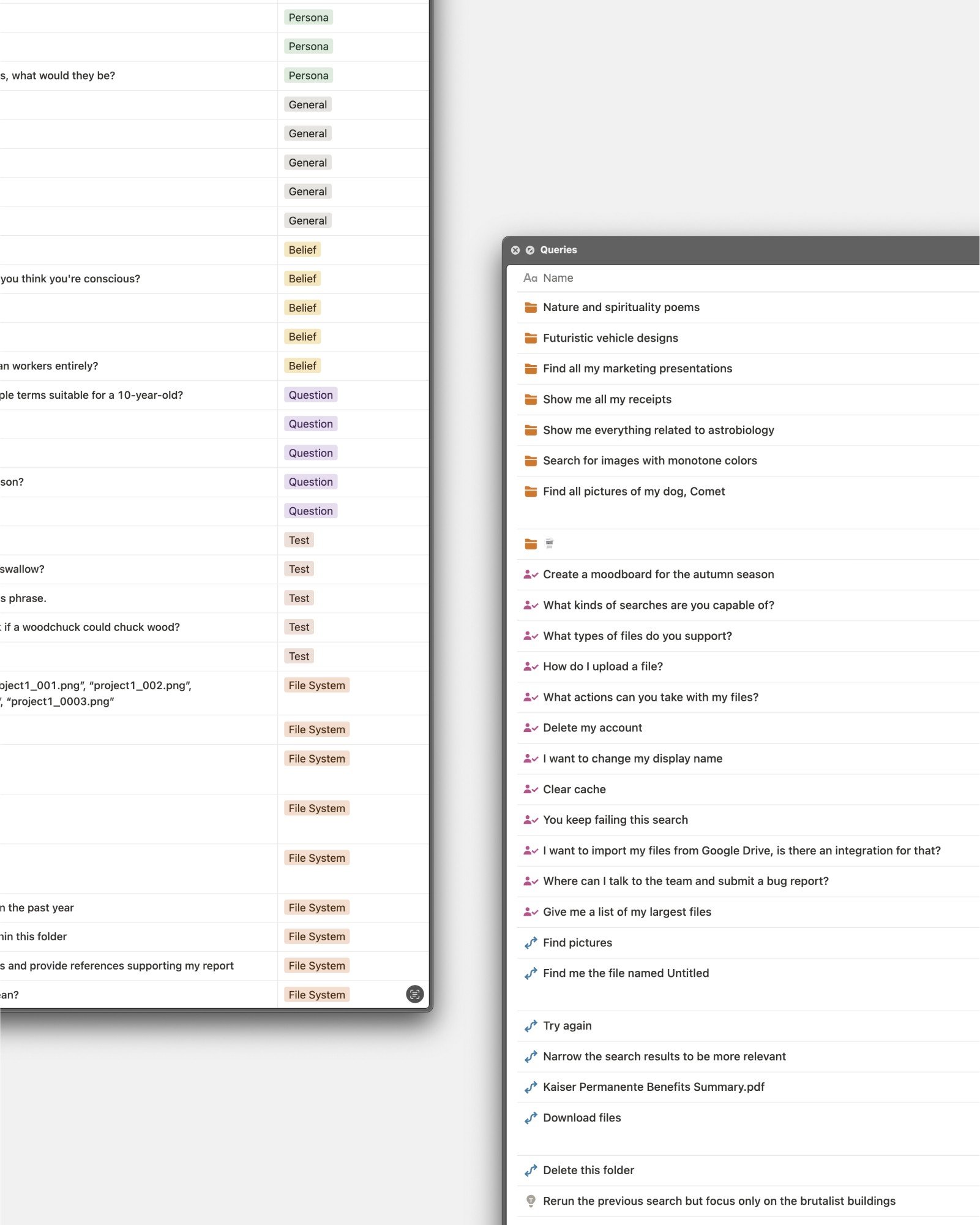 Poly is currently building an intelligent cloud file system. We're redesigning the traditional file storage experience to give you smarter, more native ways to search, browse and organize your files. The objective was to fine-tune an AI agent that understands all your media, so users can find anything in natural language, summarize a folder of documents, automatically organize, tag & rename files, and more. TLDR Key Initiatives: LLM tone dissection study, prompt library creation, actionable user studies