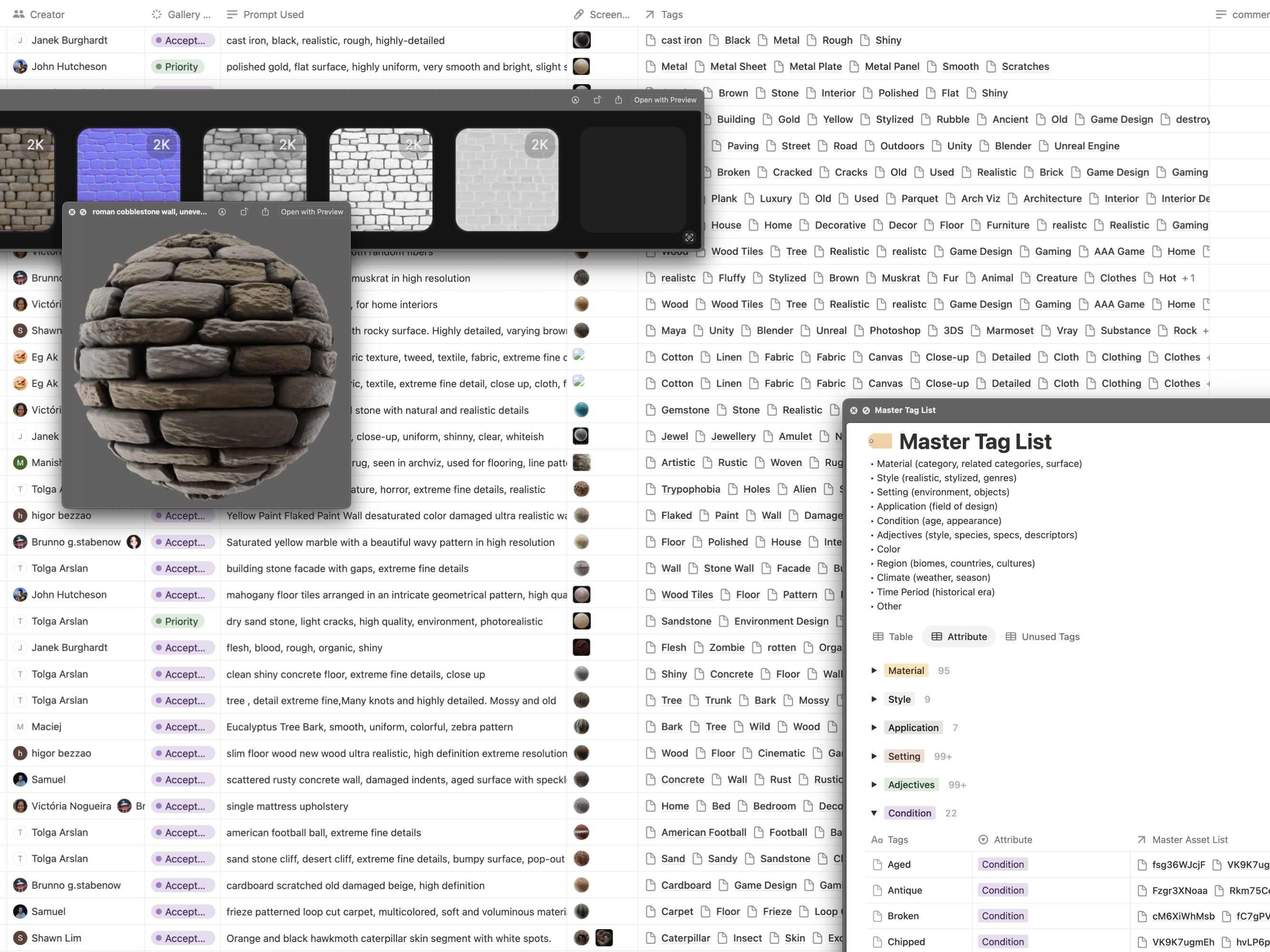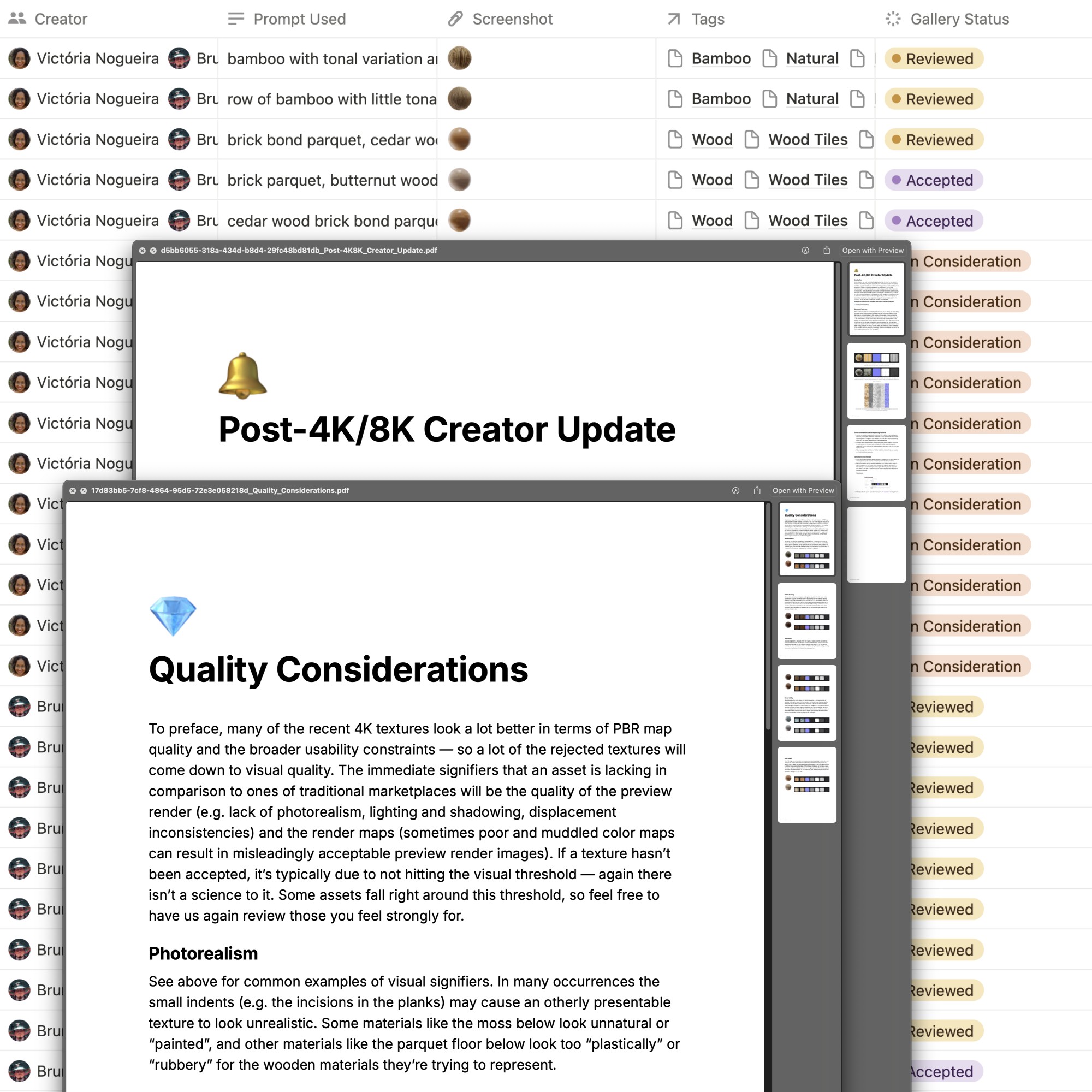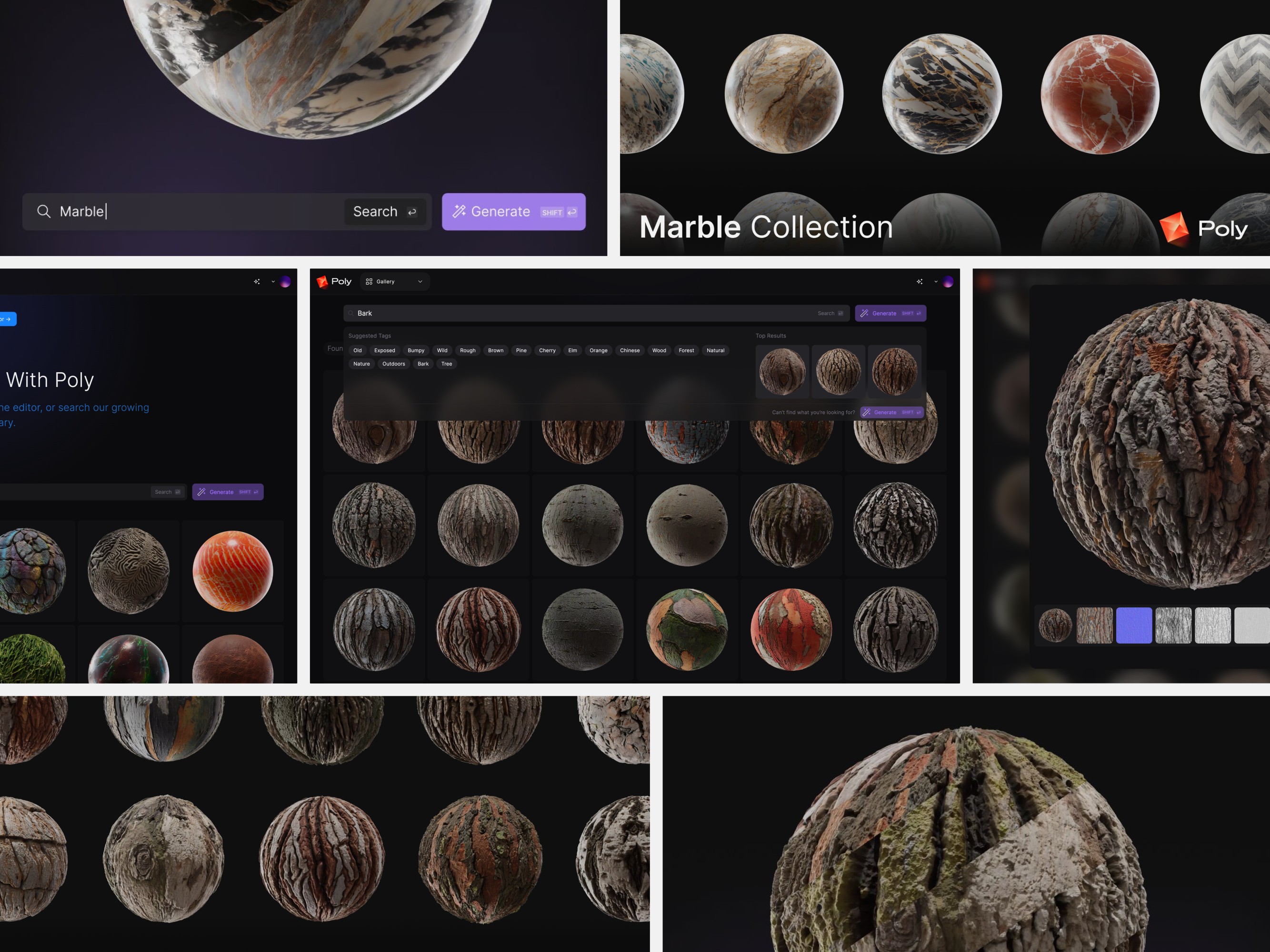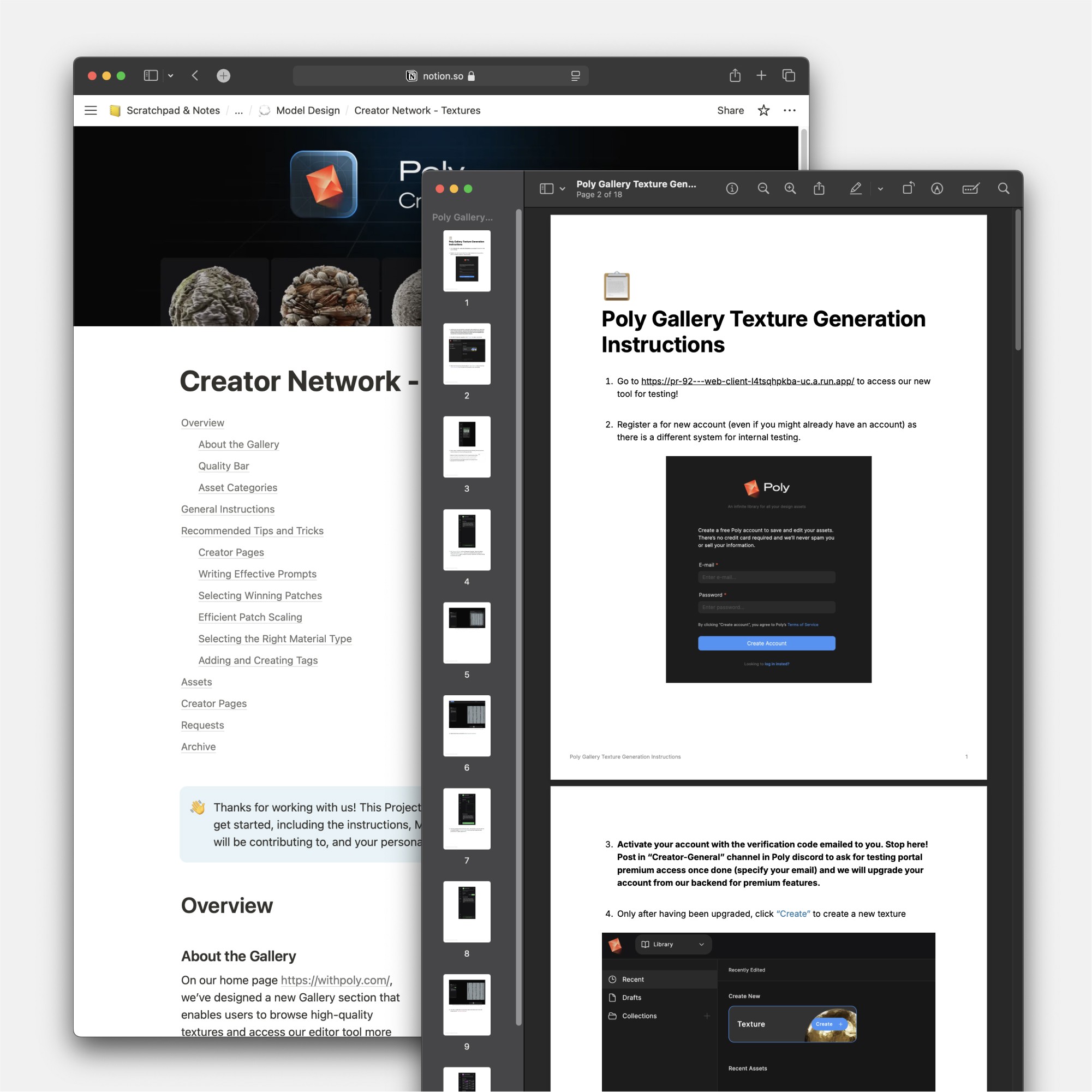Poly started when we built the first SOTA model for 3D texture generation — allowing designers to create production-ready AI-generated textures. These were PBR materials in 8K resolution and 32-bit EXR maps, from just a photo or text prompt, and customizable in a full editor. With over 200K monthly active users and 100K+ daily generations, we also ran a large scale creator program producing human-generated training data as inputs to our reward model pipeline. TLDR Key Initiatives: Hand curated dataset, human data generation